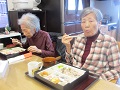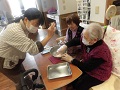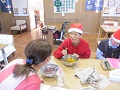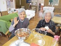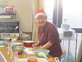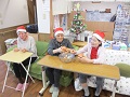 12月のメインイベント、クリスマス会をやりました♪皆様でクリスマス料理を作りました。一人一人が色々なお手伝いをしてくださったので、素敵な料理が出来上がりました☆メニューは、「ピラフ・煮込みハンバーグ・大根サラダ・カボチャスープ・サンタのゼリー」を楽しく召し上がっていました♪職員一同でハンドベル演奏に挑戦しました。曲は「ジングル・ベル」と「きよしこの夜」で、演奏を終えてから皆様から拍手喝采を頂きました☆