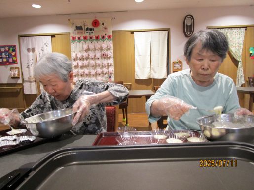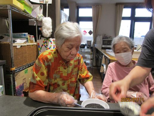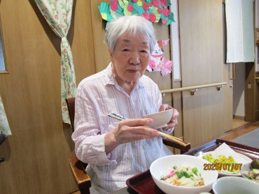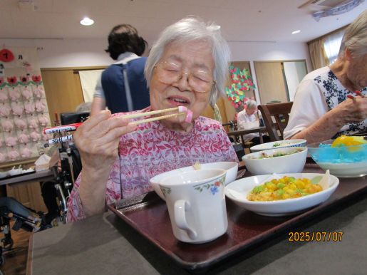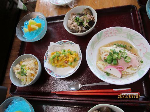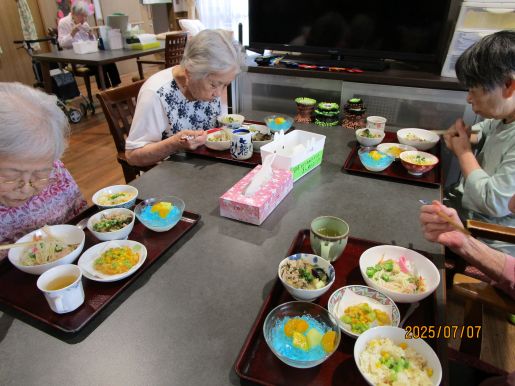 七夕当日朝から皆さんと協力してたくさんのメニューを作りました。