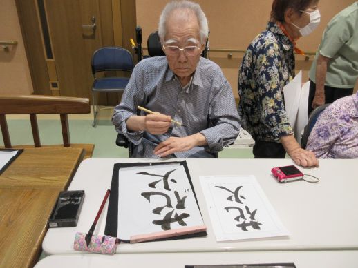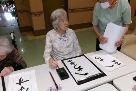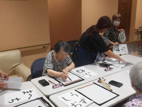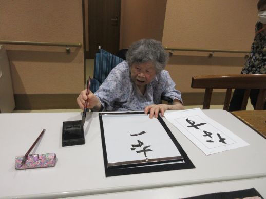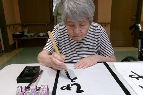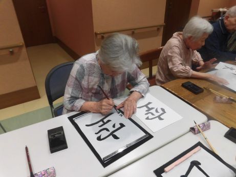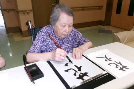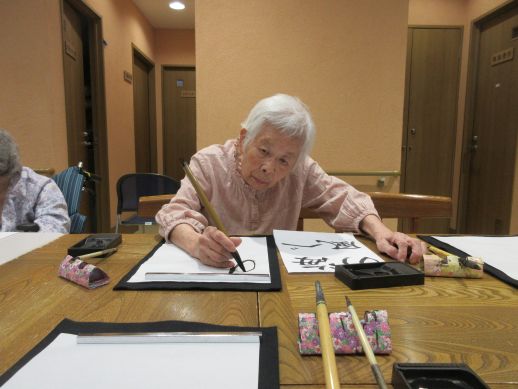 グループホーム中の郷では、年間を通じてたくさんのイベント・行事を開催しています。毎月の季節行事以外にも、誕生会やフラワーセラピー、書道、オカリナ教室などを月1~2回開催しています。