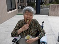 今日は園庭に出ておやつタイム、秋の味覚を満喫できる、おやつ、芋羊羹と熱いお茶を飲みながらゆっくり過ごしながら、昔話しから最近の話まで色々話しました!