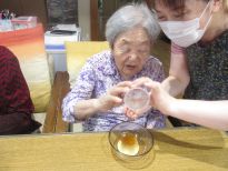 グループホーム中の郷では、年間を通じてたくさんのイベント・行事を開催しています。毎月の季節行事以外にも、誕生会やフラワーセラピー、書道、オカリナ教室などを月1~2回開催しています。