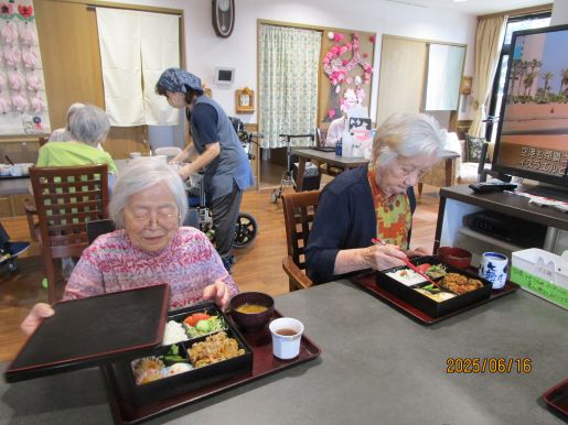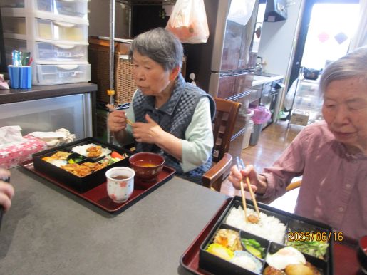 隣の方と違うお弁当で、それもいいね、美味しと聞きながらも召し上がっていました♪
