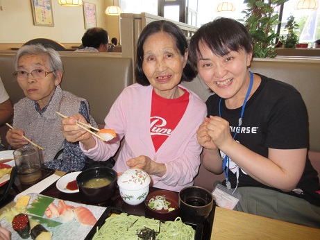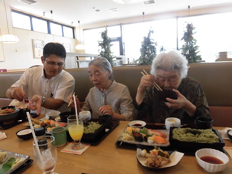 今年も田名にある、『なるベリーファーム』にお邪魔しに行ってきました♪イチゴの取り方を聞いていざイチゴのもとへ…☆“沢山なってるね☆”“こんなに食べて良いの?”“美味しい♪”との声が聞かれました♪たくさんイチゴを食べましたが、今度は昼食を食べに『とんでん』へ!各々好きな物を注文して…お蕎麦や天ぷら、お寿司に舌つづみ☆たくさん食べ幸せそうなご様子でした☆