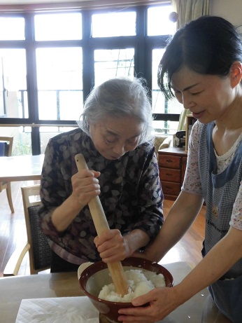 “さあ!これで何作ろう?”と、炊飯で残ったご飯と用意した物は・・・?すり鉢、すりこぎ棒!今日のおやつは五平餅♪♪と食べ物を無駄にしない精神は、さっすがぁ~です☆甘味噌だれで頂き大好評でした。